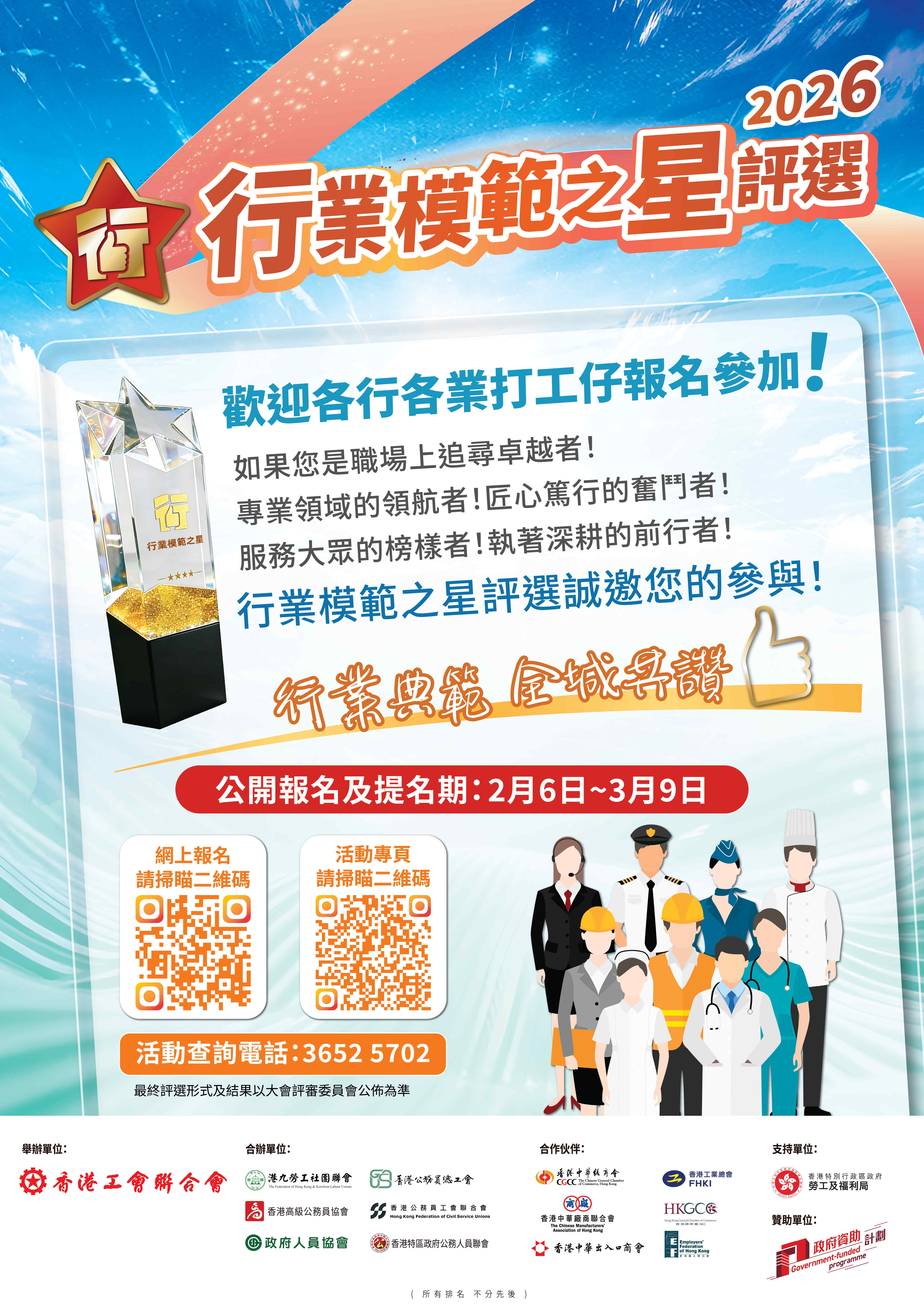 由香港工会联合会主办,本会为合作伙伴的「行业模范之星评选」首届活动在特区政府大力支持下,成功汇聚劳、资、政三方的核心力量,工联会联同各大集团工会、各大商会积极筹办「行业模范之星」评选,共同发掘、表彰那些在平凡岗位上创造不平凡价值的劳动英雄,建立制度化表彰机制,让隐世职人站上荣耀舞台。