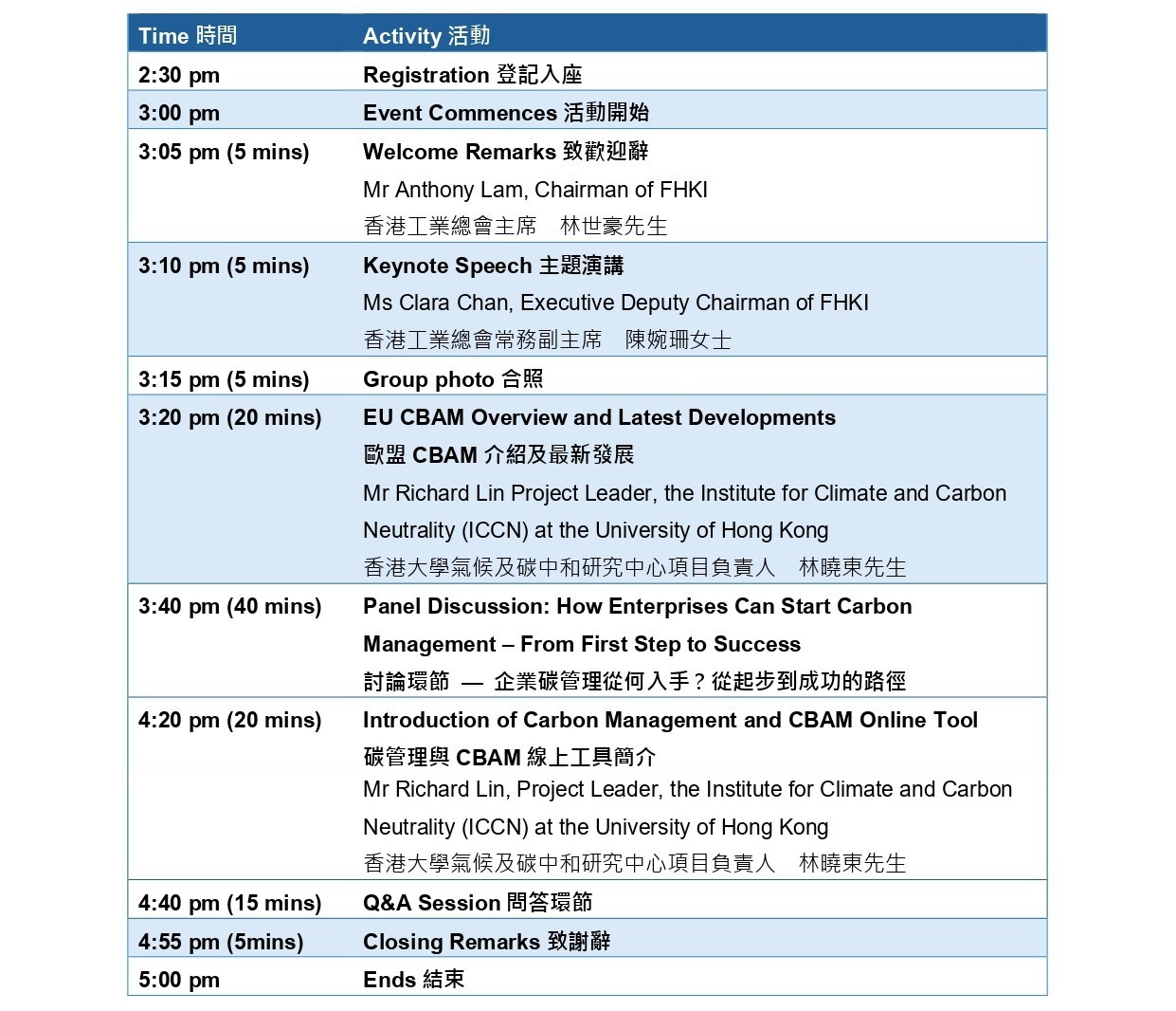 工總委托香港大學氣候及碳中和研究中心開發《碳管理與CBAM線上工具》,以提供歐盟碳邊境調整機制(CBAM)合規要求及碳管理的資訊,並協助企業快速估算產品的碳排放量,以及未來可能需要承擔的CBAM稅額。工總將舉辦《碳管理與CBAM線上工具》發布及研討會,讓港資製造企業的代表了解更多關於碳管理及CBAM的知識。