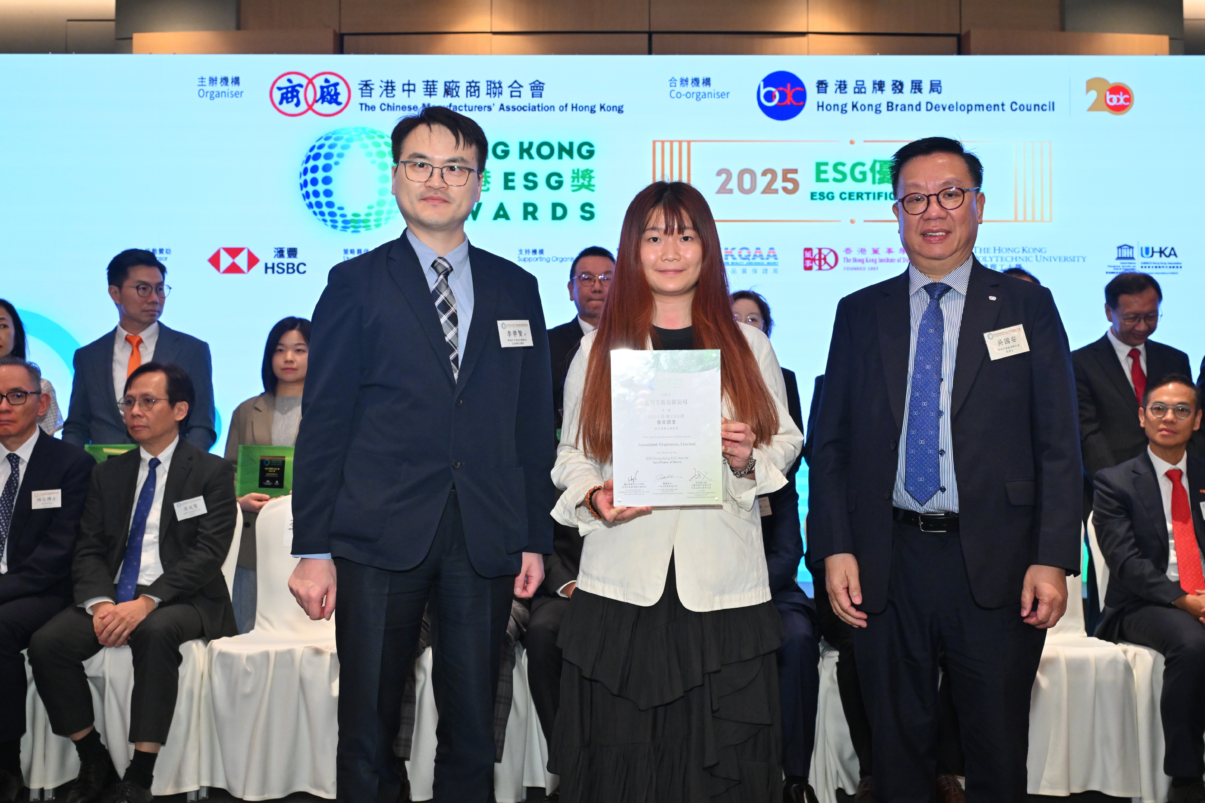 The ESG Grand Award, the highest honour of the 2025 Hong Kong ESG Awards, was presented to Lee Kum Kee Company Limited for its innovative Geothermal Heat Pump System at the Xinhui Production Base. The ESG Award was presented to ten companies, including China Resources Enterprise Property Investment Company Limited, Dah Chong Hong Holdings Limited, Fu Hong Society, Hung Fook Tong Group Holdings Limited, Hang Heung Cake Shop Company Limited, REC Engineering Company Limited, Nestlé Hong Kong Limited, Phoenix Media Investment (Holdings) Limited, Shanghai Industrial Holdings Limited, and Shun Tak Holdings Limited. The winners of the Special Award for SME included Charming International (HK) Group Limited, i2Cool Limited, MTR Corporation Limited - Tierra Verde Customer Service Centre, Perfect Green Supplies Company Limited, and RHT Industries Limited. In addition, the inaugural ESG Certificate of Merit was introduced this year, recognising seven enterprises for their commendable all-round ESG performance.