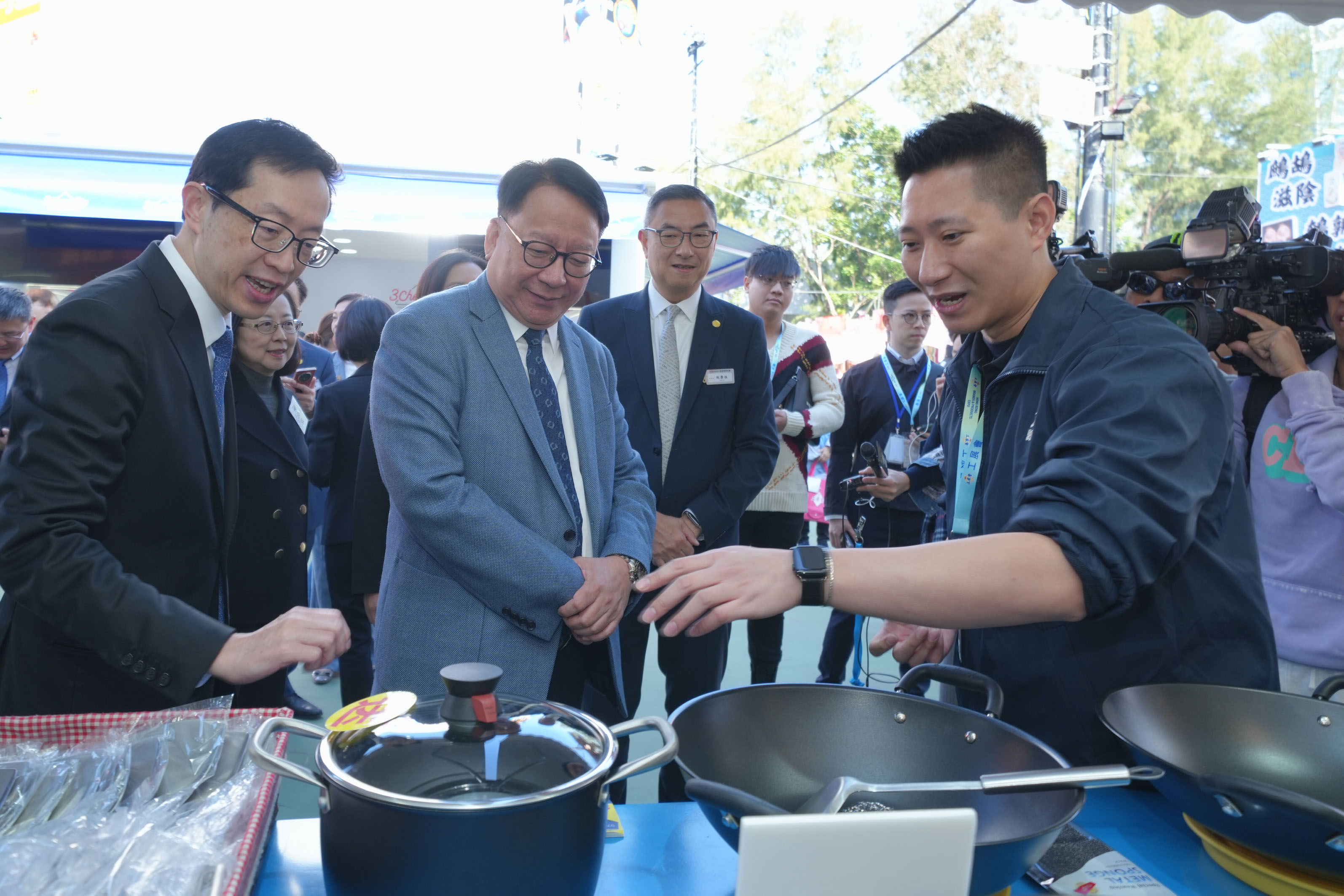 The 59th Hong Kong Brands and Products Expo (HKBPE), organised by the Chinese Manufacturers’ Association of Hong Kong (CMA), officially opened on 13 December at Victoria Park in Causeway Bay. Today, Mr Eric Chan, Chief Secretary for Administration of the Hong Kong Special Administrative Region (HKSAR), officiated at the launching ceremony, toured the Expo, and interacted with exhibitors, demonstrating his strong support for local enterprises.