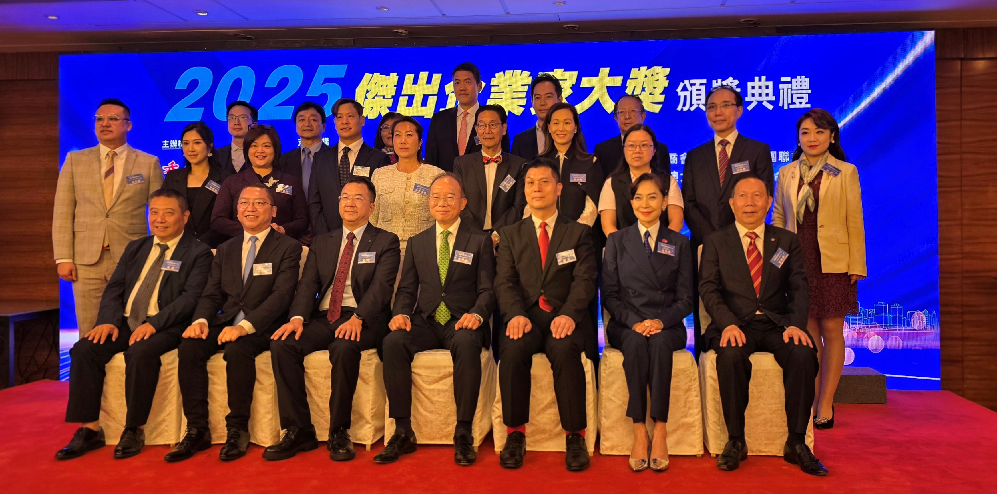 Organized by the Hong Kong Commercial Daily and supported by CMA, “The 2025 Outstanding Entrepreneur Awards Ceremony” was held on 16 October at InterContinental Grand Stanford Hong Kong. CMA Vice President Mr Calvin Chan (3rd from the right, 3rd row) represented CMA to attend and posed a group photo with Guest of Honor Mr Erick Tsang Kwok-wai (middle, 1st row), winners and other guests.