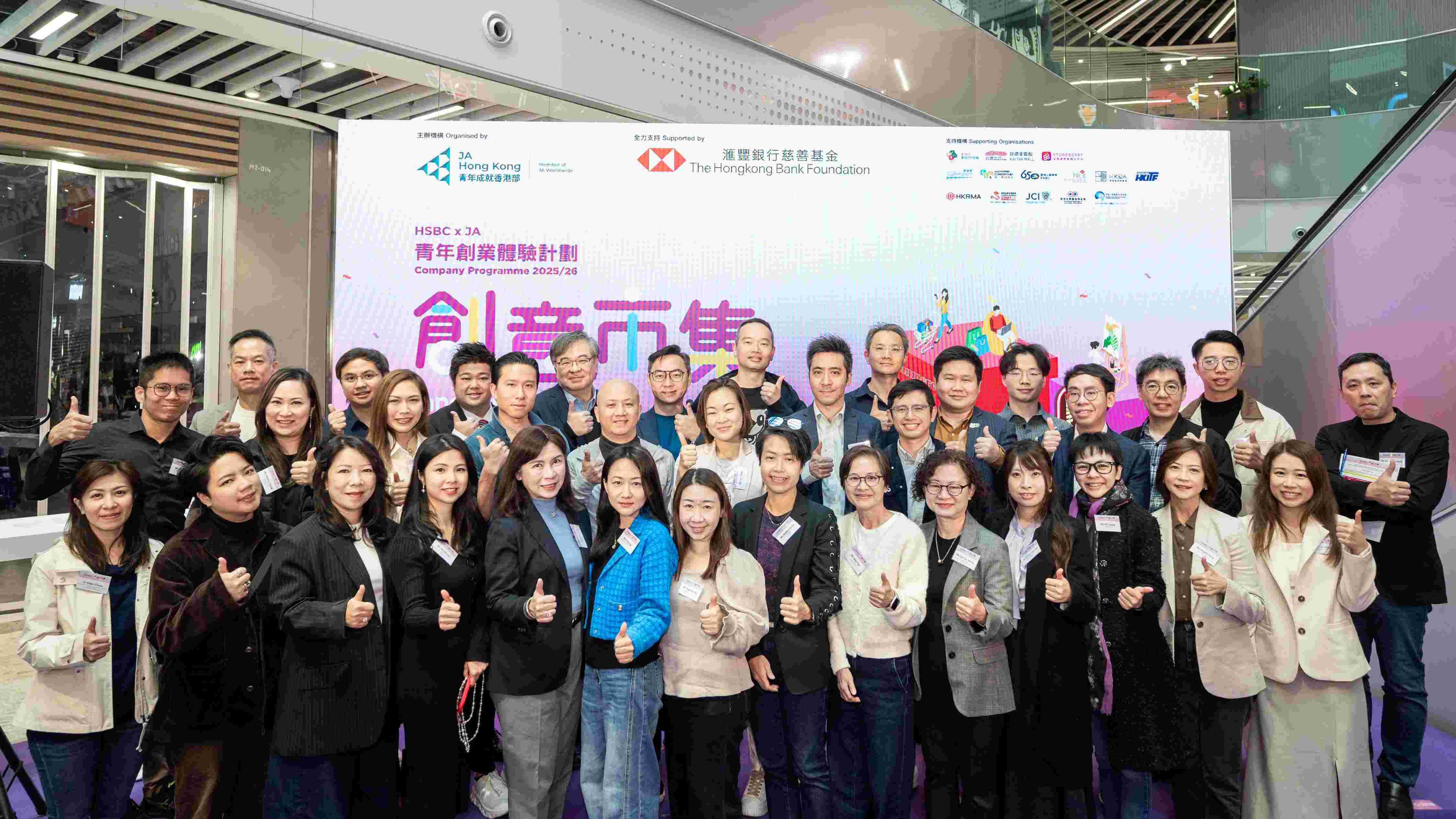 Organized by JA Hong Kong and supported by CMA, ‘HSBC x JA Company Programme 2025/26’ was held at Kai Tak Mall on 10 March. Ms Stella Lee (5th from left, first row), Executive committee member of CMA, attended and served as one of the first-round judge on behalf of CMA. and took a group photo with the judging panel members.