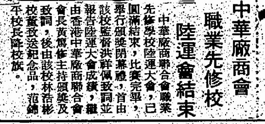香港工商日報〈中華廠商會 職業先修校 陸運會結束〉