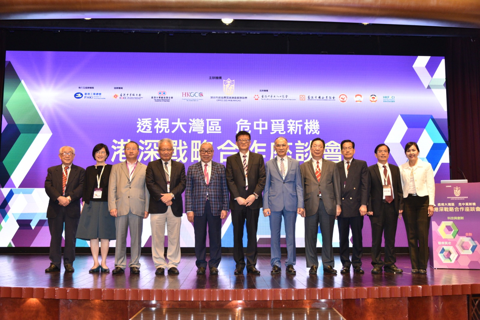 由深圳市政協歷屆港澳委員聯誼會主辦、本會協辦的「透視大灣區 危中覓新機 - 港深戰略合作座談會」於7月4日假香港君悅酒店舉行。本會吳宏斌會長(左四) 出席為主禮嘉賓之一,並與政協深圳市委員會副主席徐友軍(中)及其他嘉賓會面。