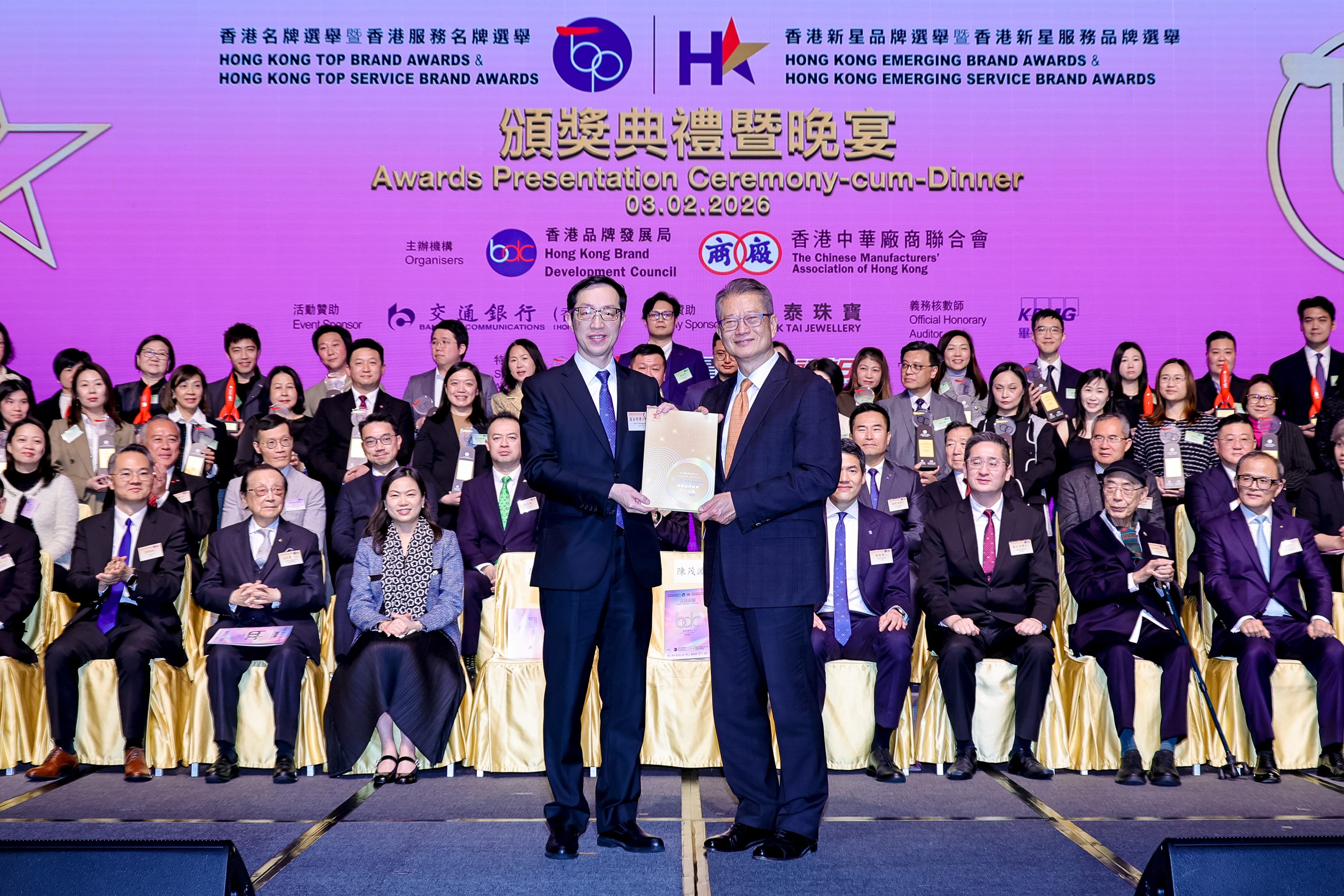 香港品牌發展局(品牌局)與香港中華廠商聯合會(廠商會)日前(3日)假香港會議展覽中心會議廳聯合舉行2025年品牌選舉頒獎典禮,邀得香港特區政府財政司司長陳茂波擔任主禮嘉賓,並聯同商務及經濟發展局常任秘書長黃少珠、商務及經濟發展局副局長陳百里,以及工業貿易署署長廖廣翔等擔任頒獎嘉賓,一同見證共41個傑出香港品牌及品牌領袖的誕生。